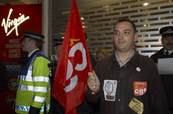 ![]() On police advice, Virgin closed their shutters as the demonstration arrived. Virgin Megastore, Oxford St, London |