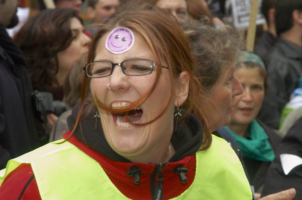 One of the march stewards at the front of the march European socialists at the front of the march |