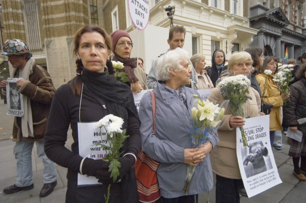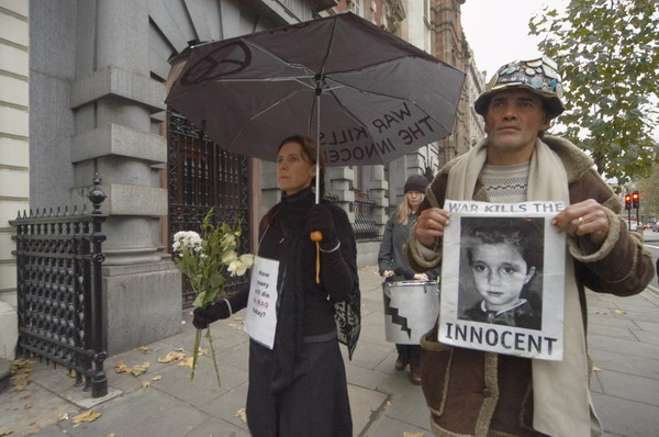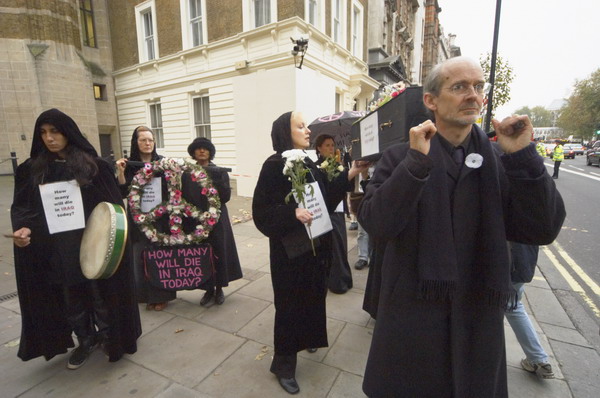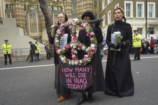 ![]() The Code Pink cortege stops opposite the Cenotaph |