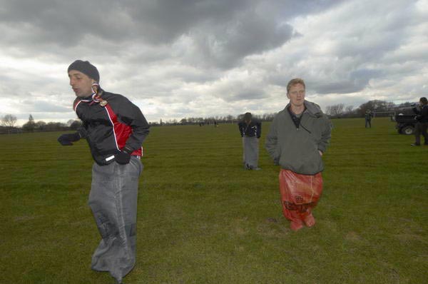 ![]() At last, Hackney marshes. These football pitches will be concreted car parks for the Olympics. ![]() Time for fun and games and warming up a bit on Hackney marshes ![]() The Sack race was a fiercely contested event. |