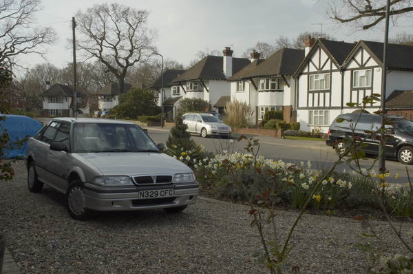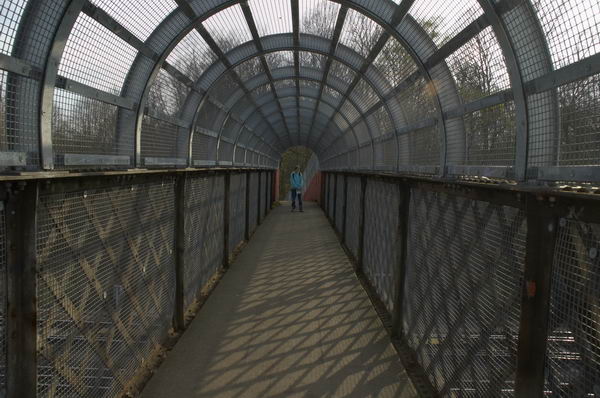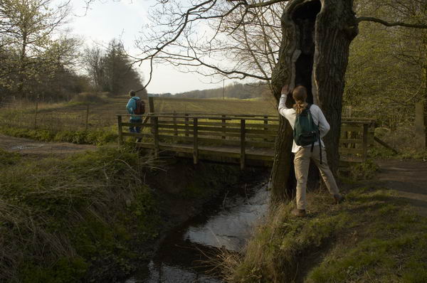 ![]() Linda crosses the Kyd Brook at Petts Wood, while Samuel examines the hollow oak. |