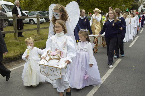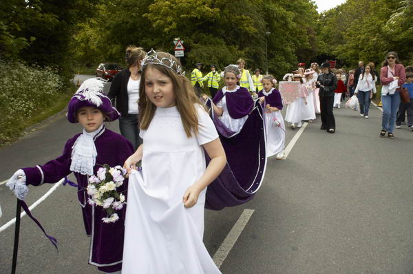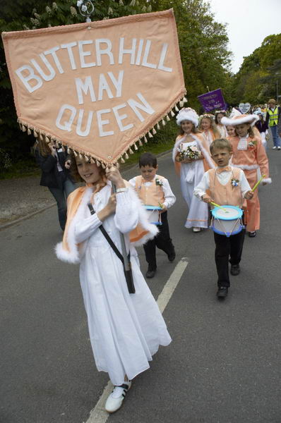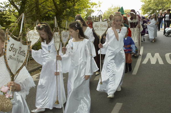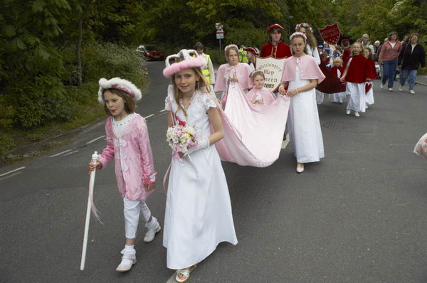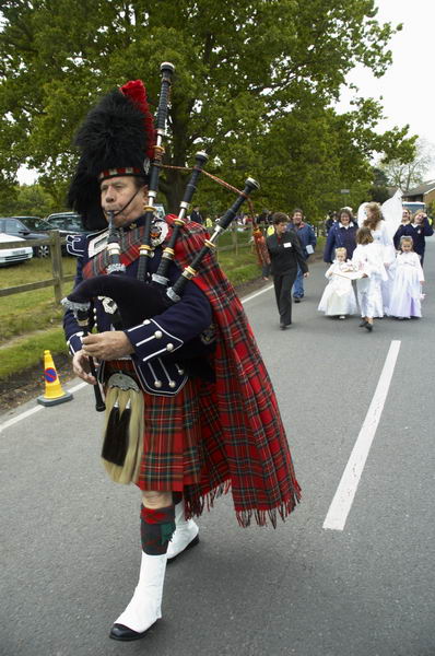 Merrie England and London May Queen FestivalHayes Common and Hayes Village, Kent, 14 May 2005![]() The procession sets off, led by a lone piper |