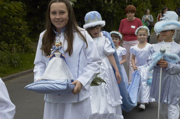 ![]() The London May Queen's crown bearer carrying the crown as the Queen is not yet crowned. |