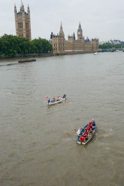 ![]() Leading boats in the Great River Race go under Lambeth Bridge towards the Houses of Parliament. |