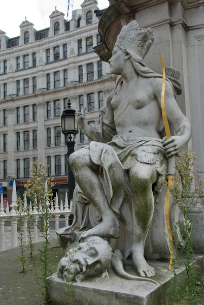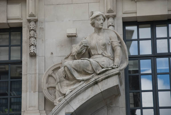 ![]() This woman holding a train is on Brittania House, offices of the London Dover & Chatham Railway in Old Bailey. |