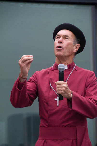![]() A marcher from the UK and a South African bishop |