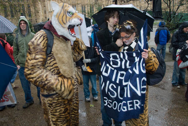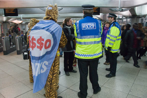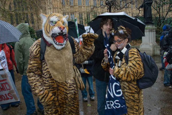 ![]() E$$o tigers meet the police at Westminster station as they arrive for the march |