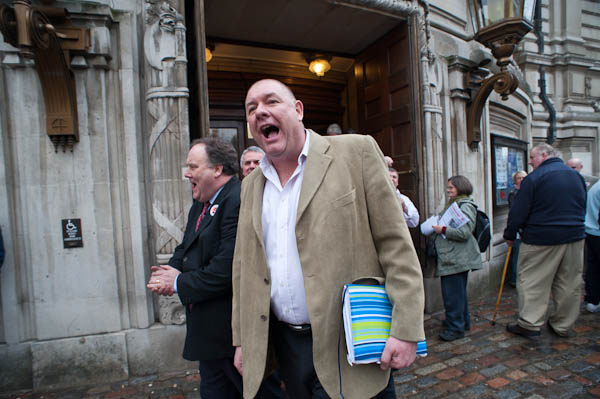 Postmen come out of the rally at Westminster Central Hall