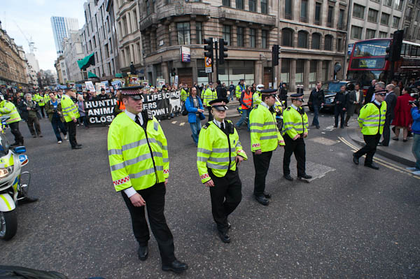 And past Moorgate, led by police and with a line of police on both sides