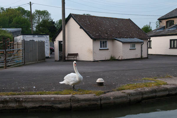 And another swan, guarding the junction with the main canal at Bulborne - but now it wasn't far to a canal-side pub