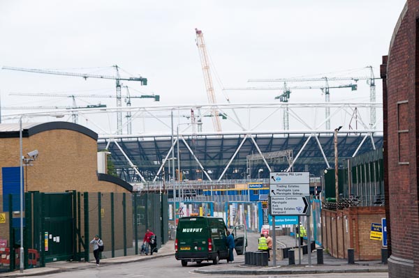 Misleading signs to the Marshgate Estate etc - no longer there - and the stadium in the background