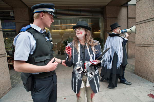 A Police Community Support Officer checks up, but declines to join the revitalised Labour Party
