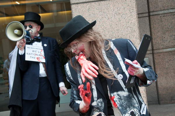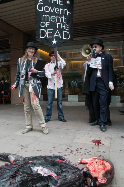 A raised fist salute from Comrade Lenin over the bloody corpse of Brown