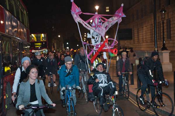 Among the zombies was Peter Tatchell, who along with many of the others there was intending to continue to Trafalgar Square and the silent candlelit 'Hate Crime Vigil' over the increasing number of homophobic attacks in London, and in particular the brutal attack there on September 25 that killed Ian Baynham.