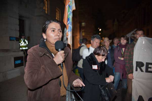 A native American woman speaks about the struggles of her peoples in South America and the problems they face with agrofuels, mining, etc