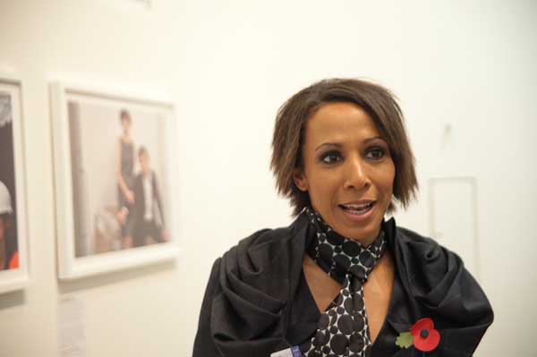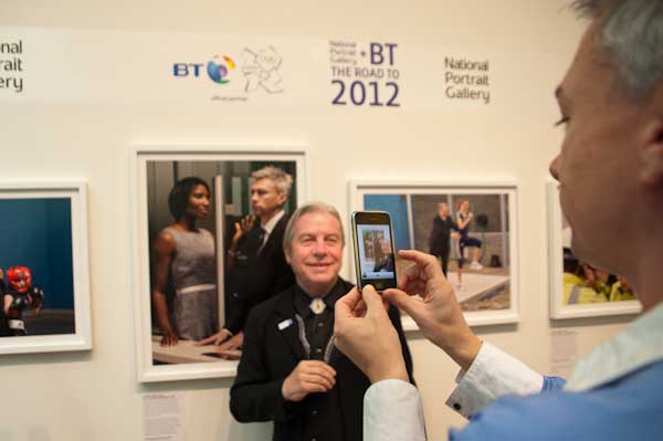 Jonathan Edwards photographs Brian Griffin in front of his picture with and Denise Lewis