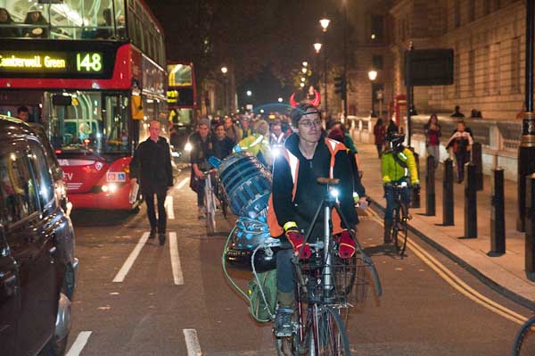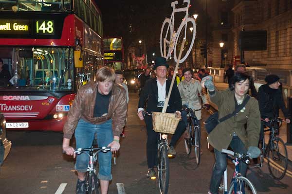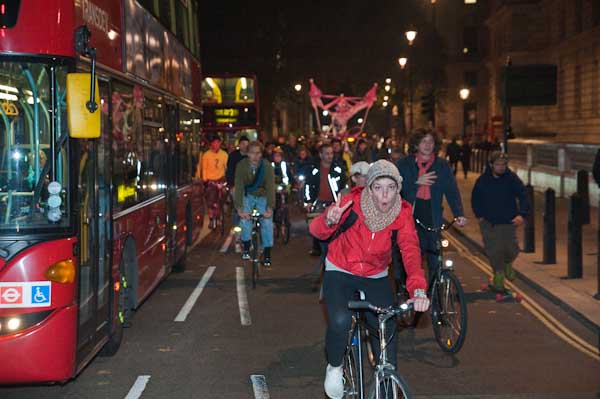 There were a very large number of cyclists and I saw no unifomed police riding with them at this point