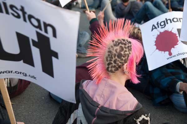 The demonstration was a part of the Afghanistan day of action called by Stop the War, and comes at a time of increasing public concern over the war, with a recent opinion poll showing over 70% of the UK population in support of a phased withdrawal of troops within a year.