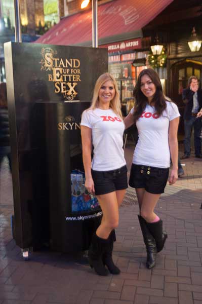 ... was a condom promotion with these two young ladies posing in front of a stand saying 'Join the Revolution' and 'Stand up for bEtter seX'