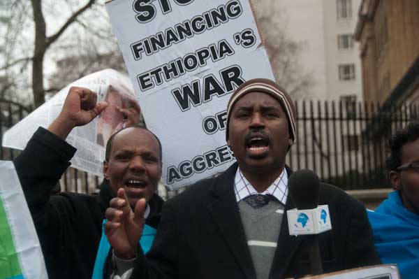 Ethiopians Protest At Bloodthirsty TyrantDowning St, London. Wed 31 March 2010