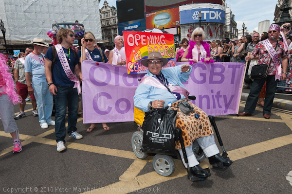 Age Concern - the Older LGBT community - included some young helpers and a guy in a chair