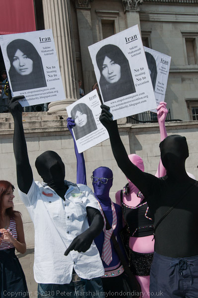 Among the many passers-by who stopped and joined in the protest for a short while were this group