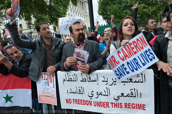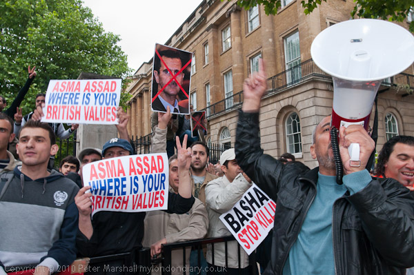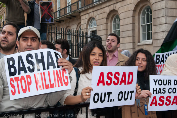 Bashar al-Assad is the President of the Syrian Arab Republic. Most of the placards call him Assad
