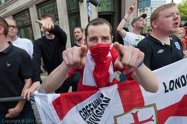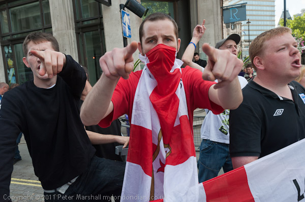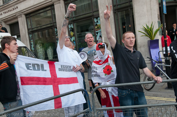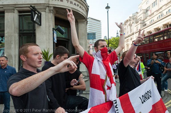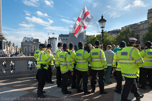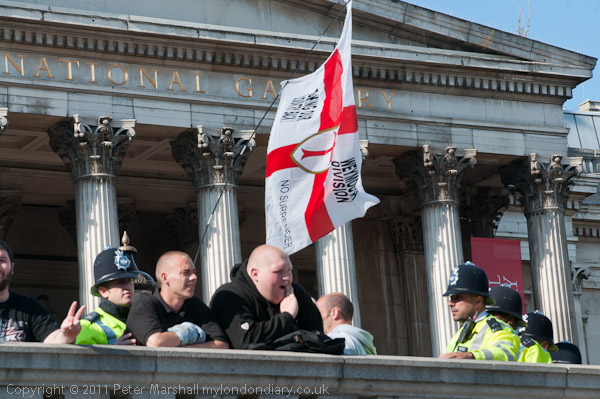 Some of the EDL made their way to protest on the North Terrace of Trafalgar Square but were soon surrounded