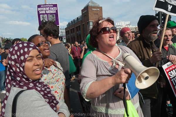 Crowds gather at Aldgate to stop the EDL, but police keep them well away