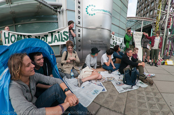 ![]() Several of those present take the opportunity to speak ![]() ![]() ![]() ![]() ![]() 'Housing Justice for All! Save Dale Farm - Evict the Tories!' ![]() |