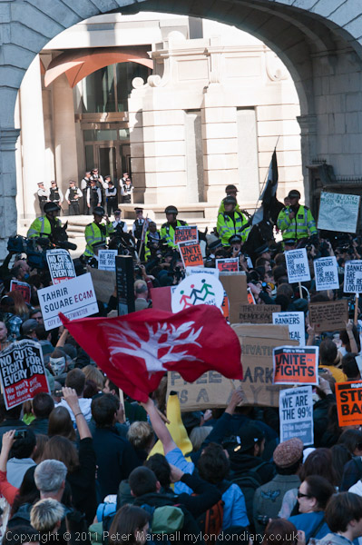Half of the people present had tried to go to the Stock exchange by were stopped by police at Temple Gate, moved here a few years ago
