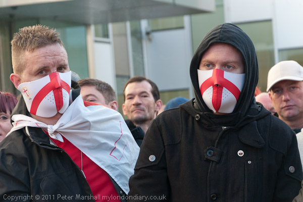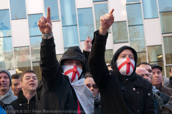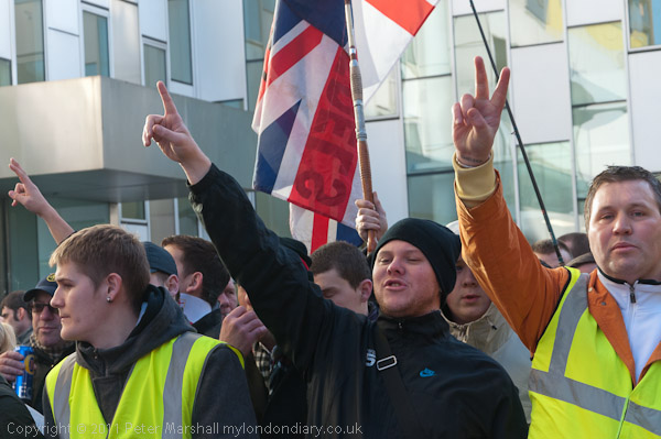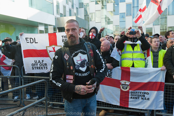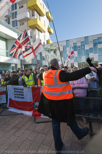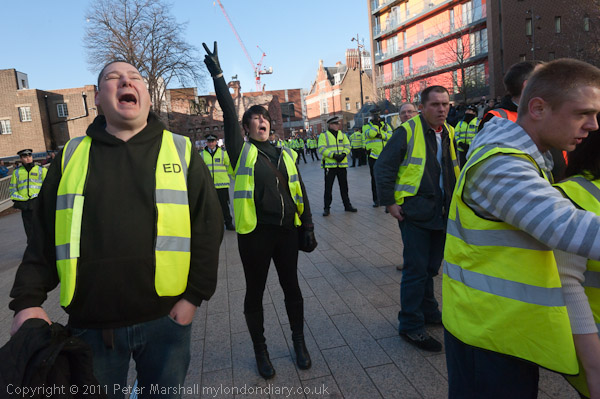 Other EDL stewards kept between the pen and the lines of police across the square