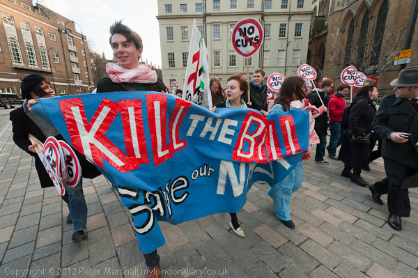 And they go towards Tavistock Square behind the 'Kill the Bill Save our NHS' banner