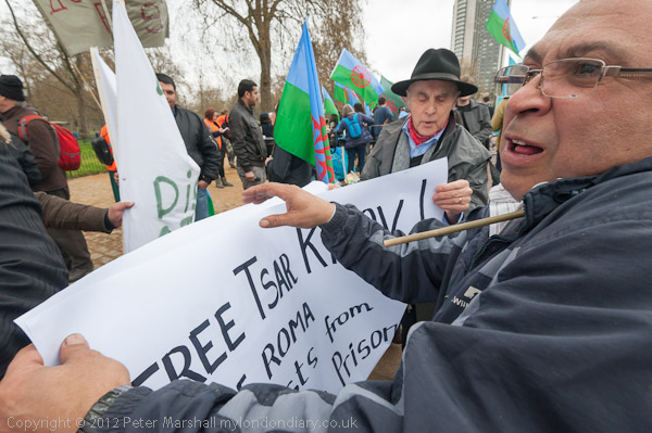 Grattan Puxon rests on Roma flag. This was the 41st Roma Nation Day and he was at the congress where it started in 1971
