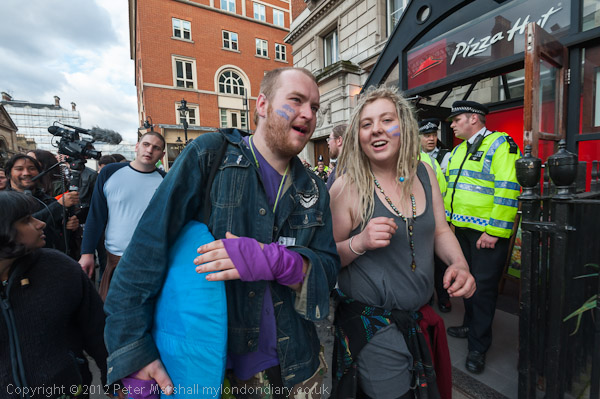 Around 6.15 the police clocked off and the protesters were at something of a loss about what to do, but decided to head for the city