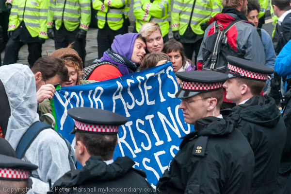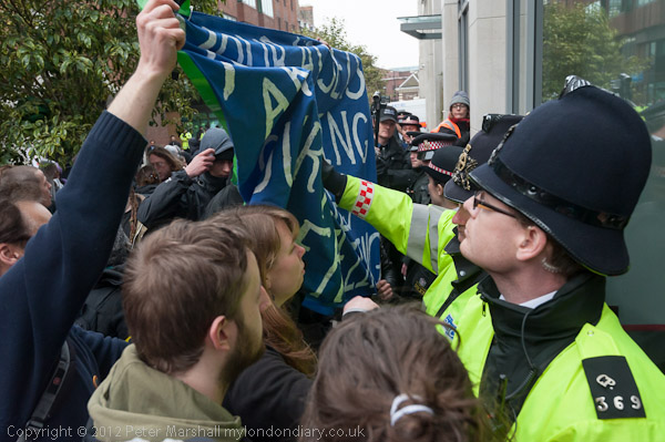 Protesters were kettled outside the hotel where they wanted to protest. It was unclear what purpose if any the kettle