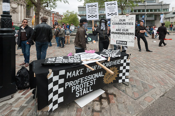 The Space Hijackers had their 'Professional Protest Stall' offering advice on making placards with some suitable examples