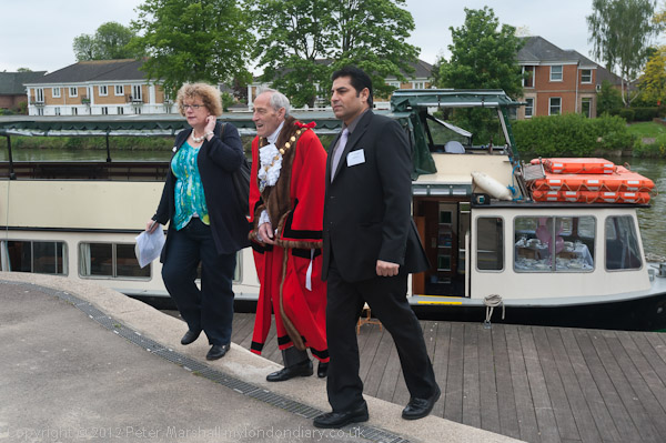 The Mayor of Spelthorne arrive back from one of the free boat trips being offered by French Bros