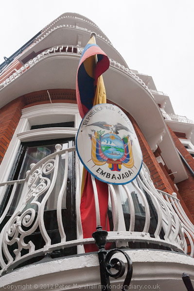 ![]() ![]() ![]() ![]() ![]() Police talk to the protesters and read the leaflet ![]() ![]() The building also has the Ecuadorian embassy |
