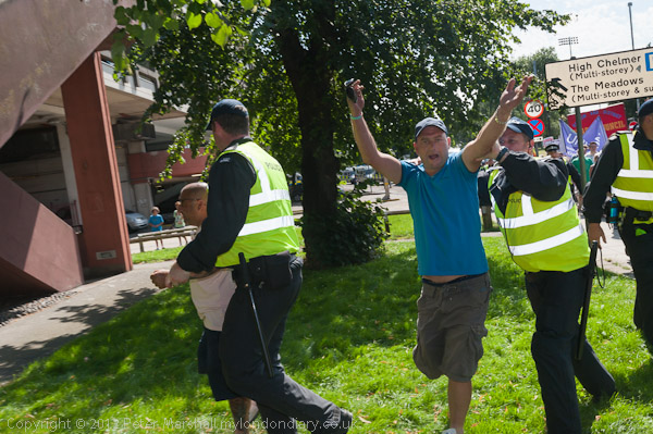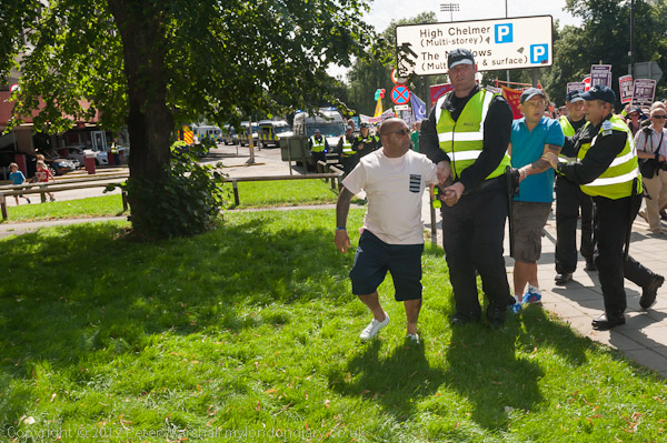 Police hold the Essex Unite Against Fascism march until the EDL are inside the cordon around their rally