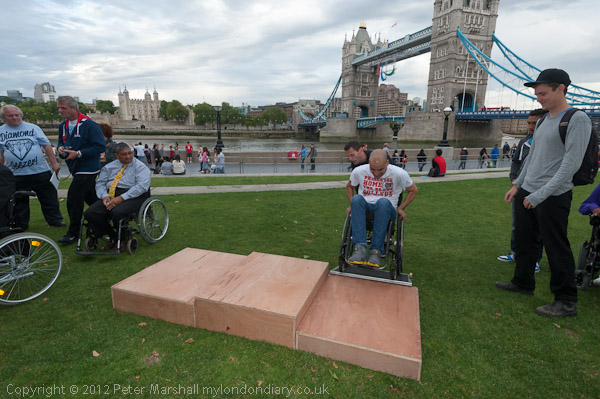 It's tricky to get wheelchairs onto the winners' podium