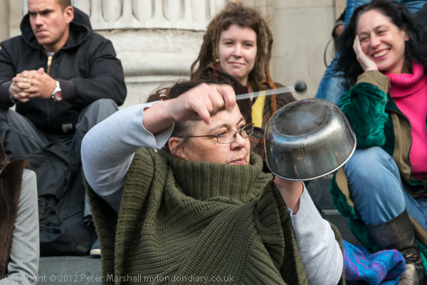 The celebration of a year since the occupation started with meditation on the steps