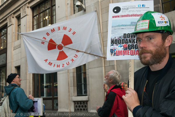 Japanese protesters also take part in the weekly protests outside the Japanese embassy against Fukushima