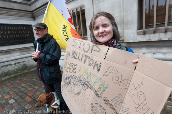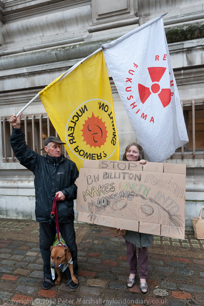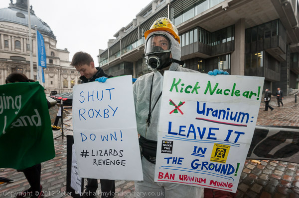 Some of the protesters had bought a share so they could attend the AGM, others stood outside