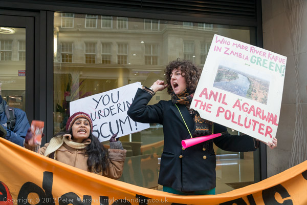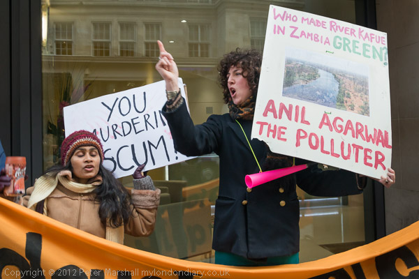 An Indian activist against Vedanta with an uncompromising message 'You Murdering Scum!'