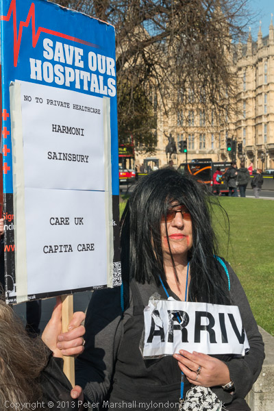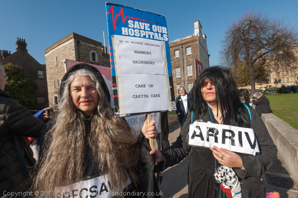 Vampires from Ealing where the performed a mock funeral against hospital closure, names the companies who would profit