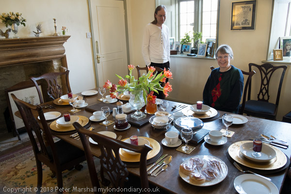 The Breakfast Room with a table set for the six guests. I'd had a good breakfast before the English Breakfast came
