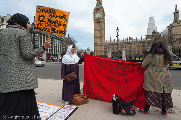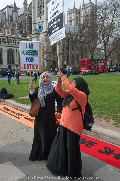 'I am hungering for Justice'. Other placards recorded the number of signatures - 117,387 - on the petition to bring Shaker home now