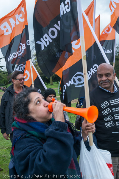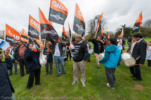The GMB band arriving for the march to Ealing Common