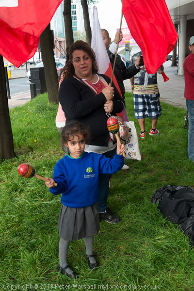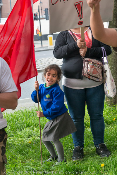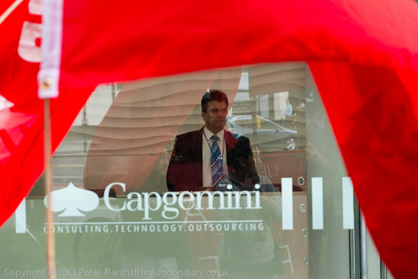 ![]() A man looks out of Capgemini at the protest ![]() There were some young protesters ![]() ![]() ![]() |